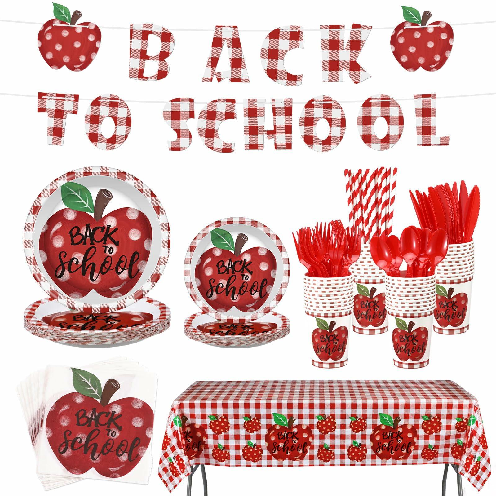 - Creative Design: this back to school disposable dinnerware are mainly printed with red apple and red grid patterns, decorating your back to school party with this tableware set to make it full of happy atmosphere and bring a happy vibe
