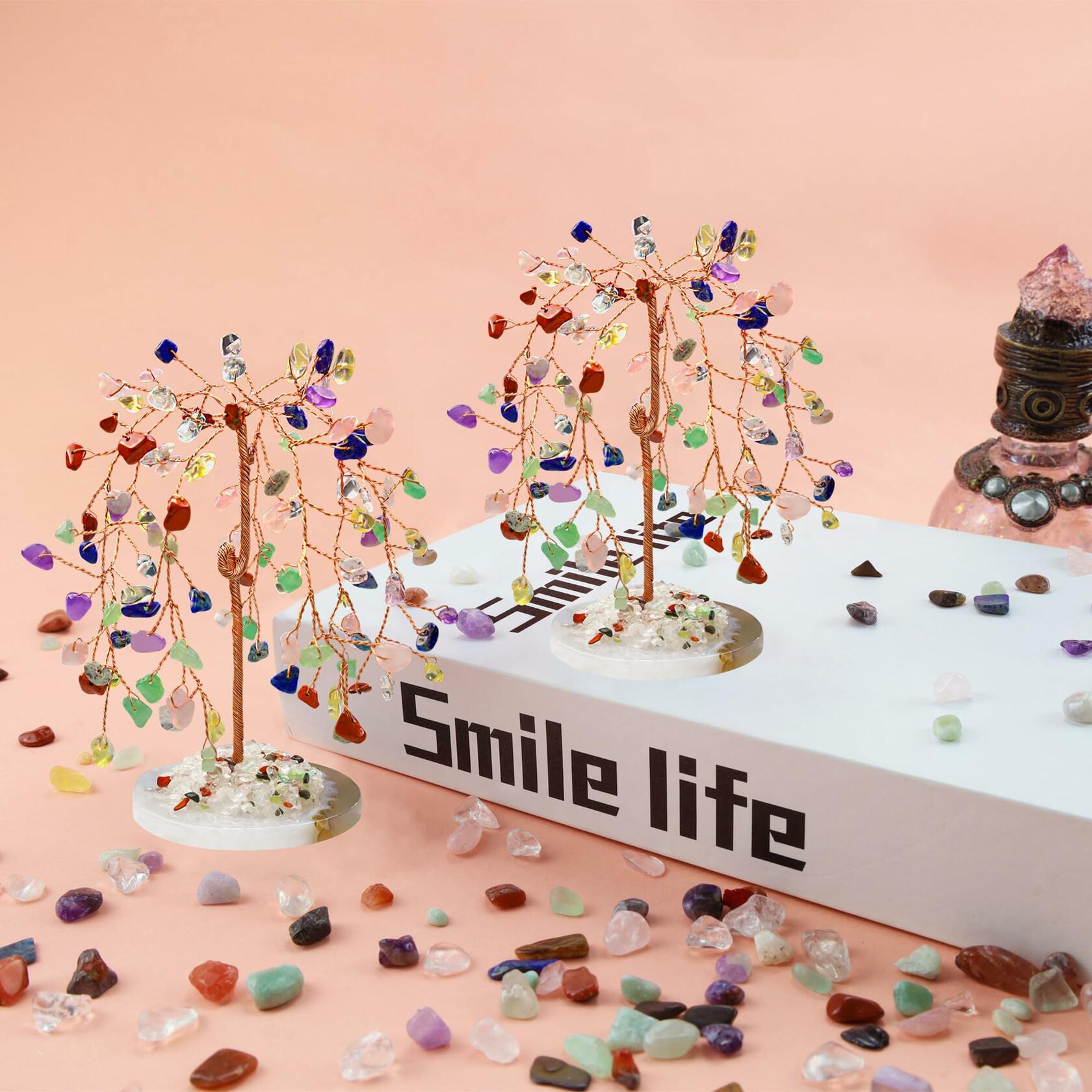 - 【Crystals Tree】: This is a beautiful Feng Shui natural healing crystals tree. Height of tree : 4.3-4.5 in. Weigh: 0.17-0.24 lbs. And comes with approximately 106 pcs natural crystal chips. This crystal tree is a tree with crystal chips as leaves, metal wires as branches and trunks, and a piece of natural agate as the base.