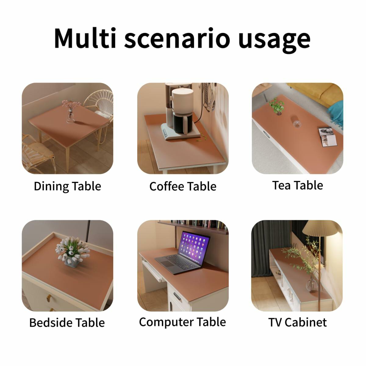The Product Is Made Of High-Quality Environmentally Friendly Leather Materials (Artificial Leather, Not Genuine Leather). The Product Is Waterproof, Scratch Resistant, And Wear-Resistant. It Can Effectively Protect Furniture From Scratches, Wear, And Stains. Greatly Increased Its Service Life. The Product Has Protective Layers On Both Sides, Which Can Be Flipped Over Freely During Use. Additionally, The Colors On Both Sides Of The Product Are Different, Making It Feel Like You Have Two Different Tables During Use. The Protective Layer On Both Sides Can Effectively Isolate The Contact Between The Product And The Surface Of The Furniture, And Prevent It From Sticking To The Surface Of The Furniture During Use. The Product Is Easy To Clean, You Just Need A Damp Towel To Wipe It Clean. Soft Texture With Good Flatness, Just Curl Its Back A Few Times To Lay It Flat. No Need To Heat, Iron Or Flatten With Heavy Objects. The Material Of The Product Has Strong Stability And Will Not Shrink, So The Size Will Be Very Precise, And There Is No Need To Worry About Edge Shrinkage During Use, Which May Result In Incomplete Coverage Of The Furniture Surface. The Product Is Also Easy To Cut, And Can Be Easily Cut Into The Size And Shape You Want With An Art Knife. The Opacity Of The Product Can Effectively Cover Scratches And Defects On The Surface Of Furniture. There Are Many Color Options For The Product, Which Not Only Cover Up Defects But Also Add Beauty. The Product Has A Wide Range Of Uses And Can Be Used On Furniture Such As Dining Tables, Office Desks, Study Desks, Coffee Tables, Dressing Tables, Bedside Tables, Tv Tables, Storage Cabinets, Shoe Cabinets, Etc. The Thickness Of The Product Is 1.8Mm. For Tabletops Made Of Marble, Glass, Or Metal Materials, The Product Can Effectively Isolate The Sound Of Tableware Or Other Objects Colliding With Them.