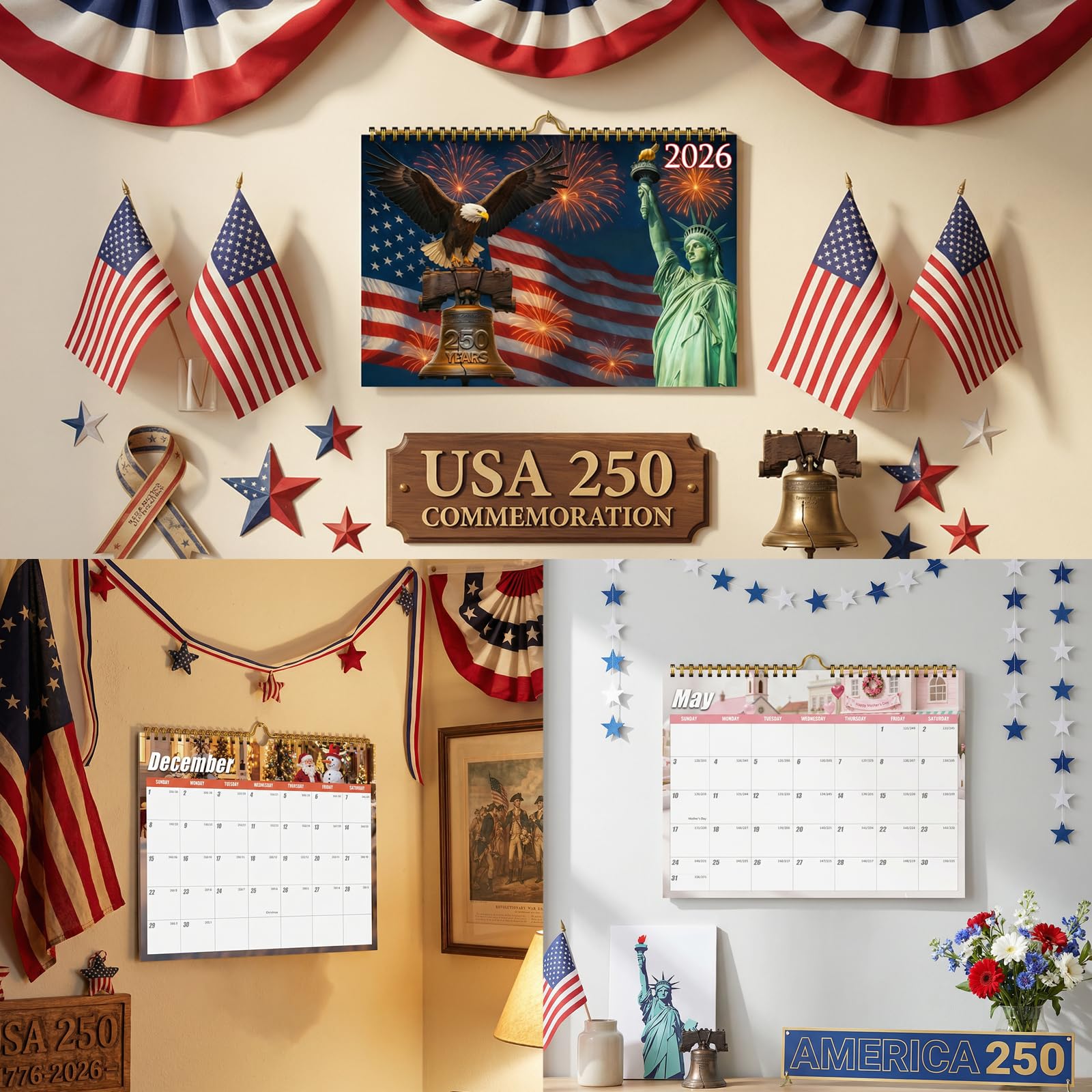 - CELEBRATE 250 YEARS OF AMERICA: Commemorate the monumental 250th Anniversary of American Independence with this exclusive 2026 calendar, a perfect keepsake to honor this historic milestone.
