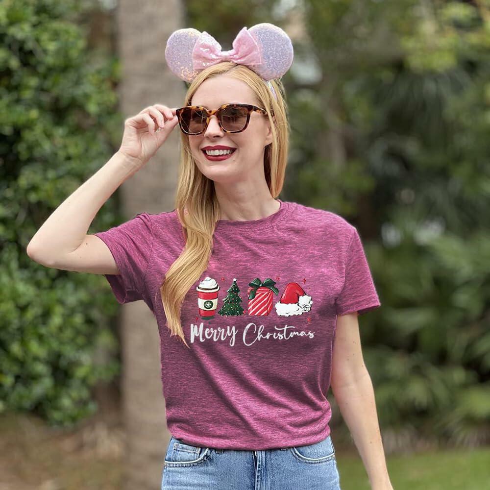 ZXCAHPT Christmas Shirt Women Merry Xmas Holiday Tee Coffee Tree Santa Size M